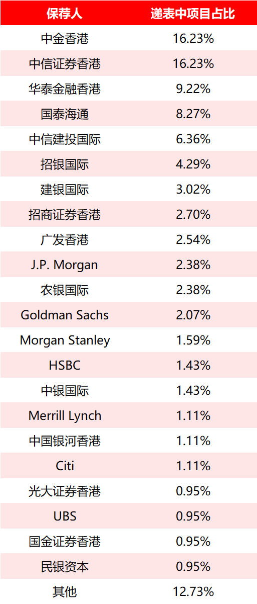 2026港股IPO目前正在递表中的公司,保荐人市场占有率榜:中金香港与中信证券香港并列第一。